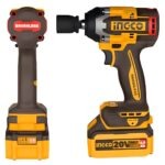 La clé à chocs sans-fil INGCO CIWLI2050 est un outil professionnel conçu pour les travaux sévères d’assemblage ou de démontage (automobile, mécanique, maintenance industrielle). Elle fonctionne sur une tension de 20 V, est équipée d’un moteur brushless (sans balais) pour plus de puissance, d’efficacité et de longévité. Le carré d’entraînement est de ½″ (13 mm), ce qui lui permet d’utiliser des douilles standard de gros diamètre. Elle propose jusqu’à 500 Nm de couple de serrage et 650 Nm de couple de desserrage (ou « breakaway torque ») — parfait pour écrous de roues, boulons de charpente, etc.