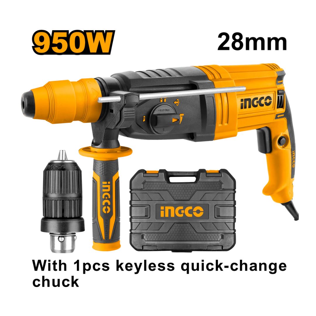 Marteau perforateur 28mm 950W+mandrin sans clé INGCO
