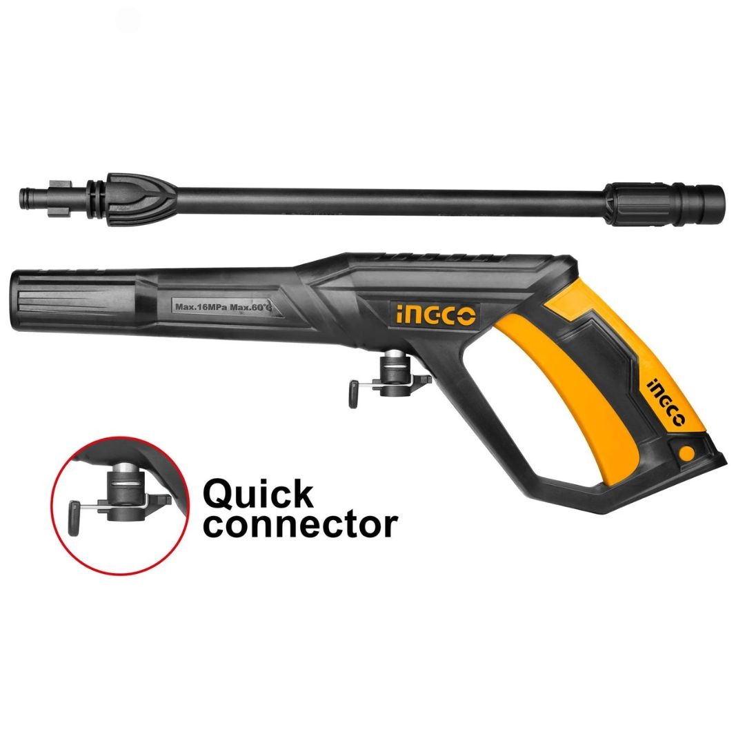 Le pistolet de pulvérisation INGCO AMSG028 est un accessoire conçu pour offrir des performances optimales lors de vos travaux de nettoyage à haute pression. Fabriqué avec un corps en plastique durable, il est équipé d’un connecteur rapide permettant une fixation facile et rapide aux tuyaux de nettoyeur haute pression compatibles. Ce pistolet est idéal pour une variété d’applications, telles que le lavage de voitures, le nettoyage de surfaces extérieures, l’irrigation de jardins et l’entretien général. Sa conception ergonomique assure une prise en main confortable, réduisant la fatigue lors d’une utilisation prolongée.