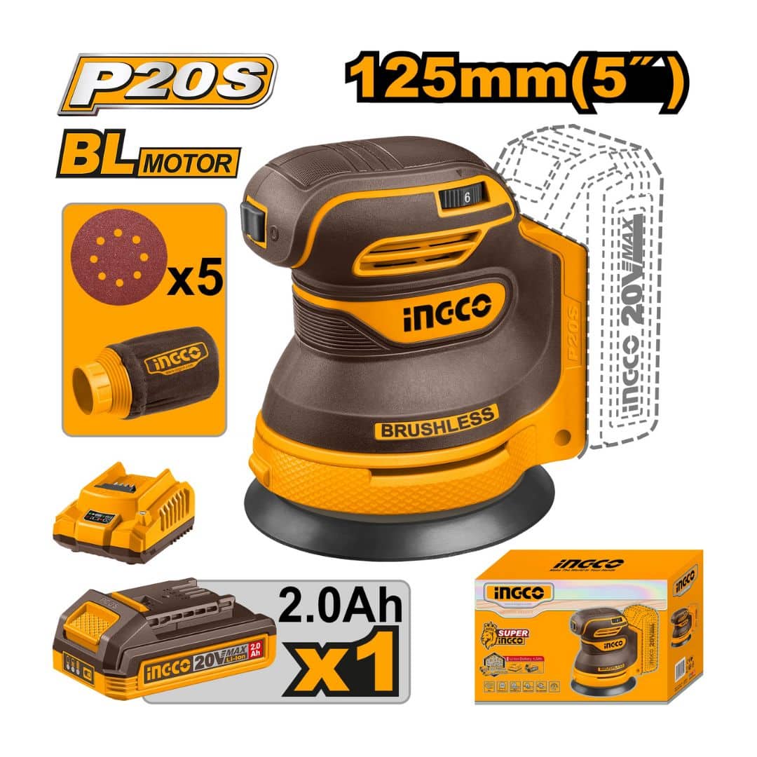 Ponceuse orbitale aléatoire sans fil INGCO